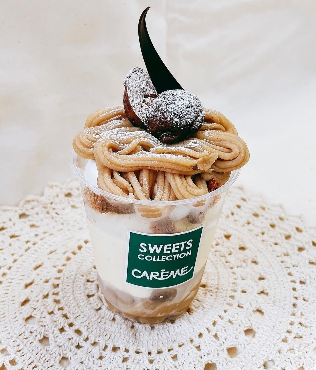 本店限定販売のモンブランパフェは和栗のクリームがたっぷり。中に入れるアイスはお好きな種類を選べます。