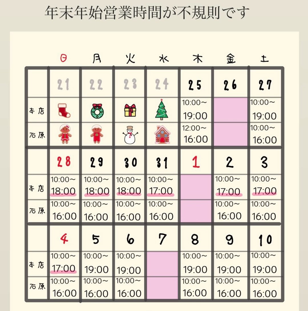 2025年も残り数日となりました。当店は31日まで営業いたします。※年末年始の営業時間は通常時と異なりますのでカレンダーでご確認ください。