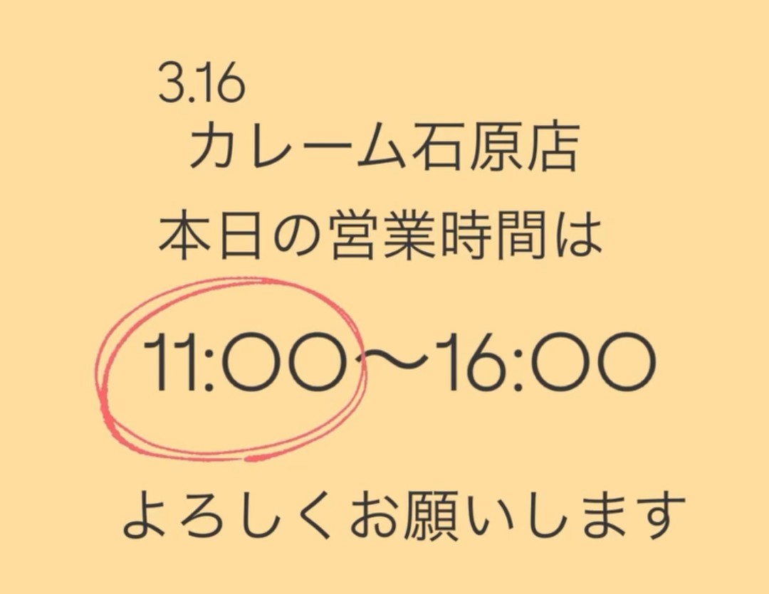本日石原店は11時オープンです