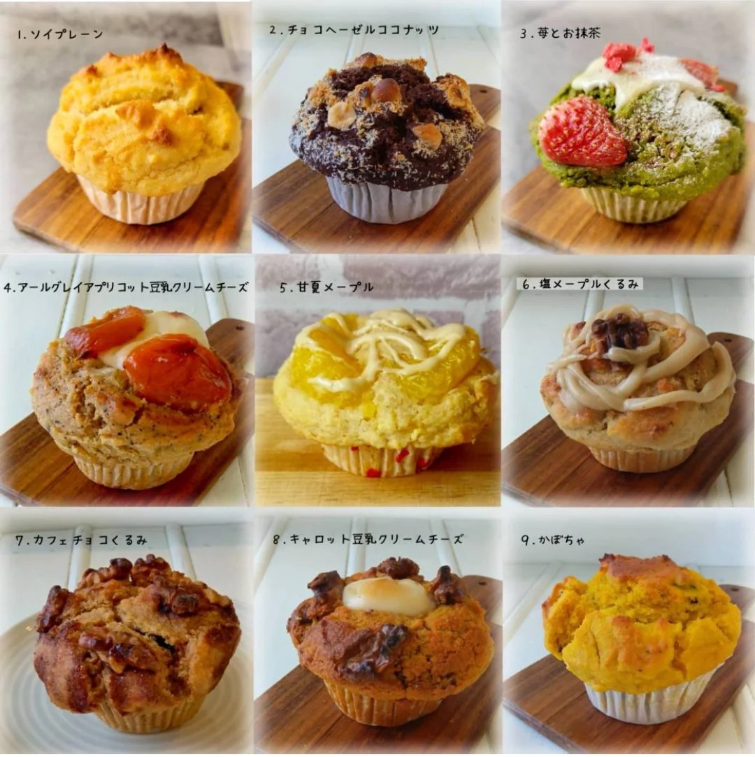 本日は石原店ナチュラルカレームday♪おからマフィンやお豆腐スコーンのほかに卵、乳製品不使用のスイーツが並びます。